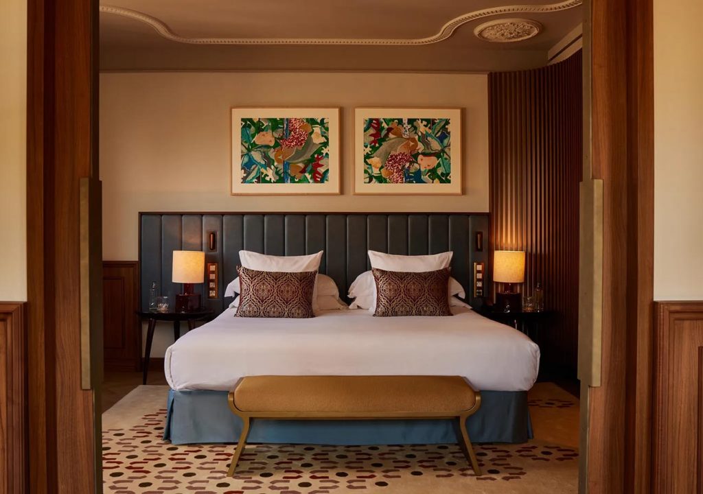 Las habitaciones son un homenaje al lujo moderno: mármol negro, textiles azul grisáceo, iluminación inteligente y arte contemporáneo. Algunas suites ofrecen vistas panorámicas desde la cama. El confort se lleva al extremo con detalles como cafetera Nespresso, sistema de sonido envolvente, amenities de autor y una carta de room service con propuestas gastronómicas de altísima calidad. Cada planta tiene su propia selección de obras de arte, curadas por expertos locales, que renuevan el concepto de “dormir en una galería”.